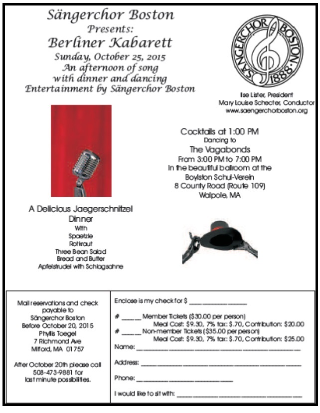 Fundraiser Brunch of the Sängerchor Boston at BSV in Walpole, MA on March 26th, 2023